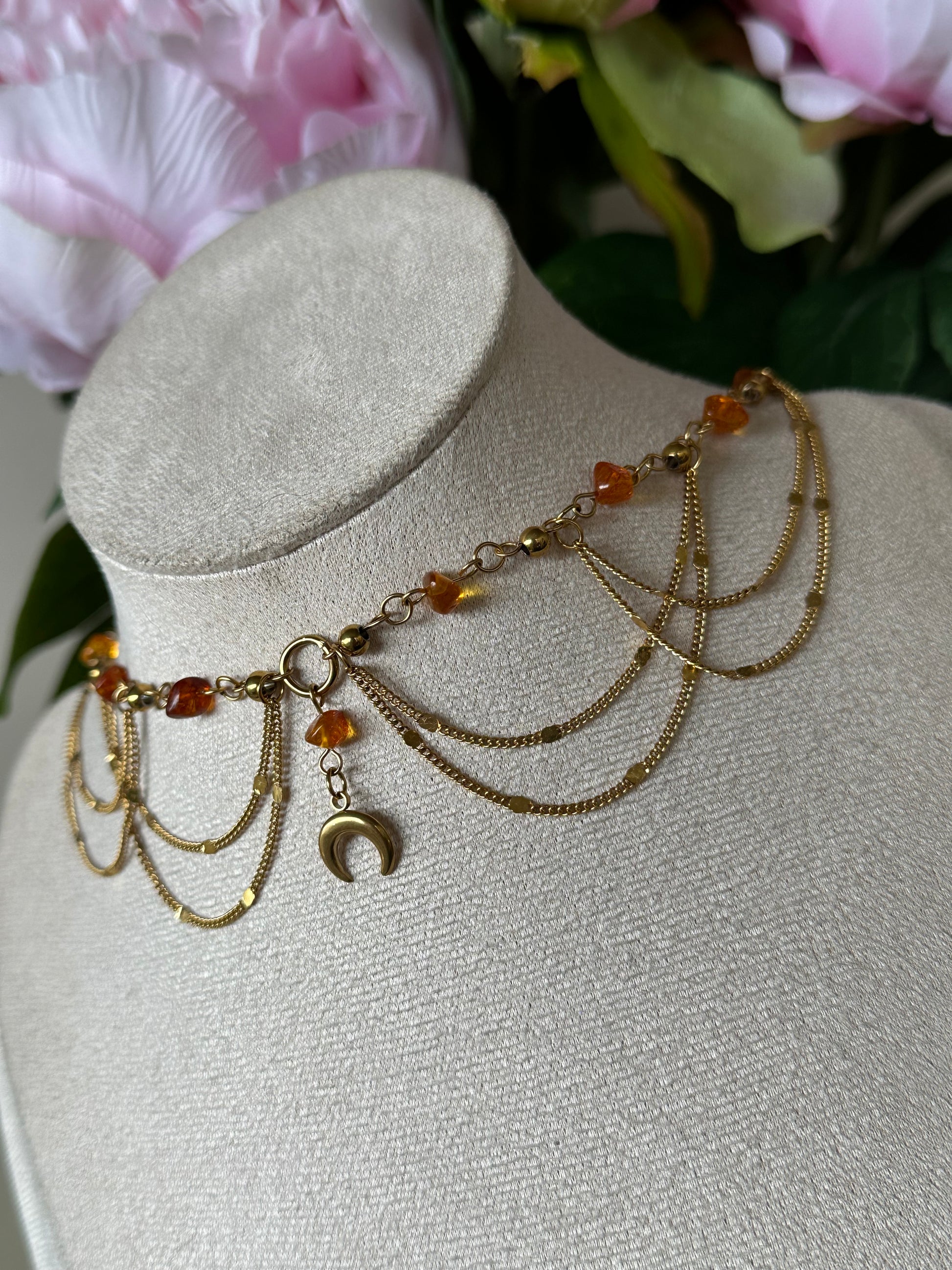 -perles d’ambre et acier inoxydable