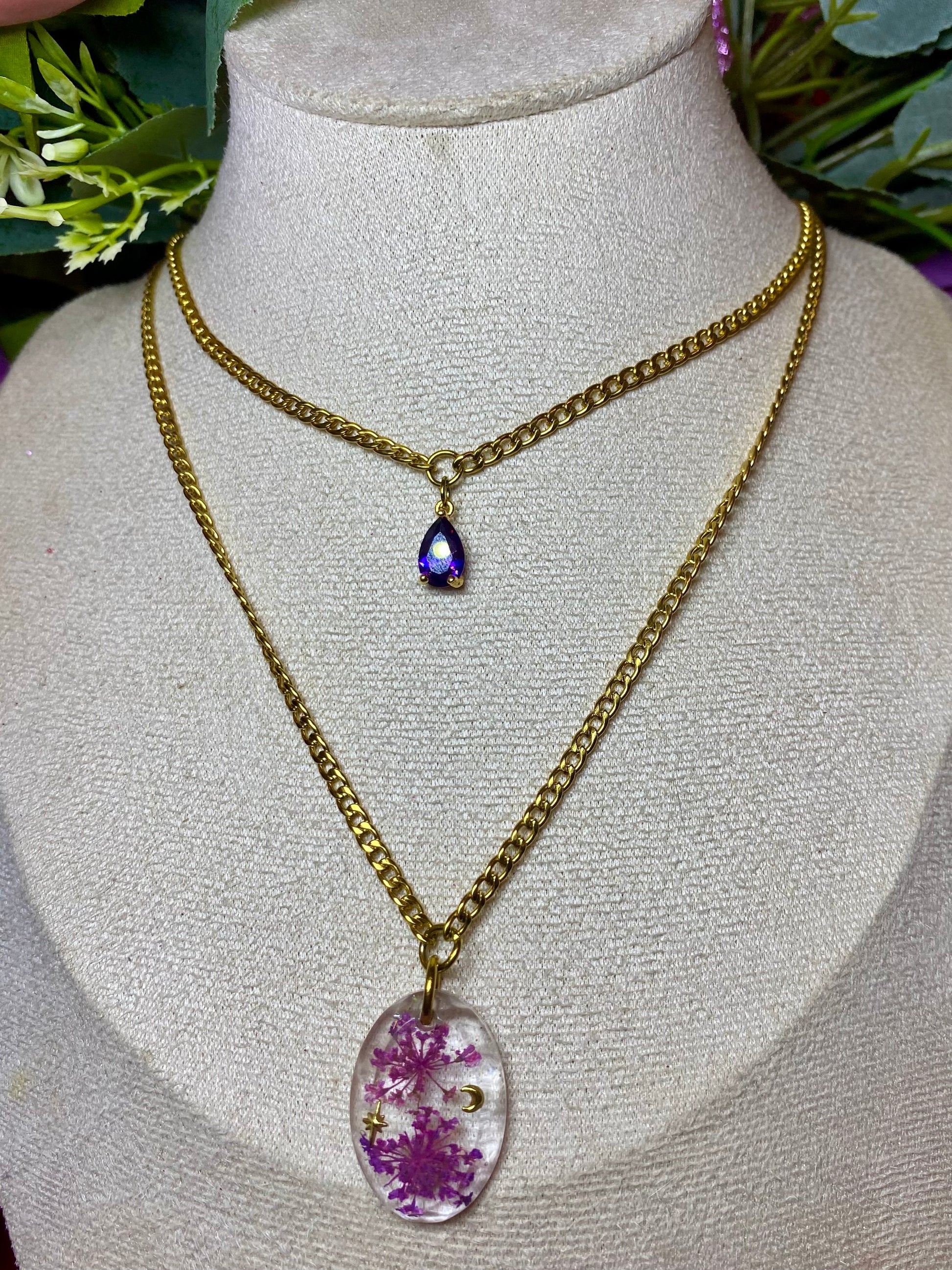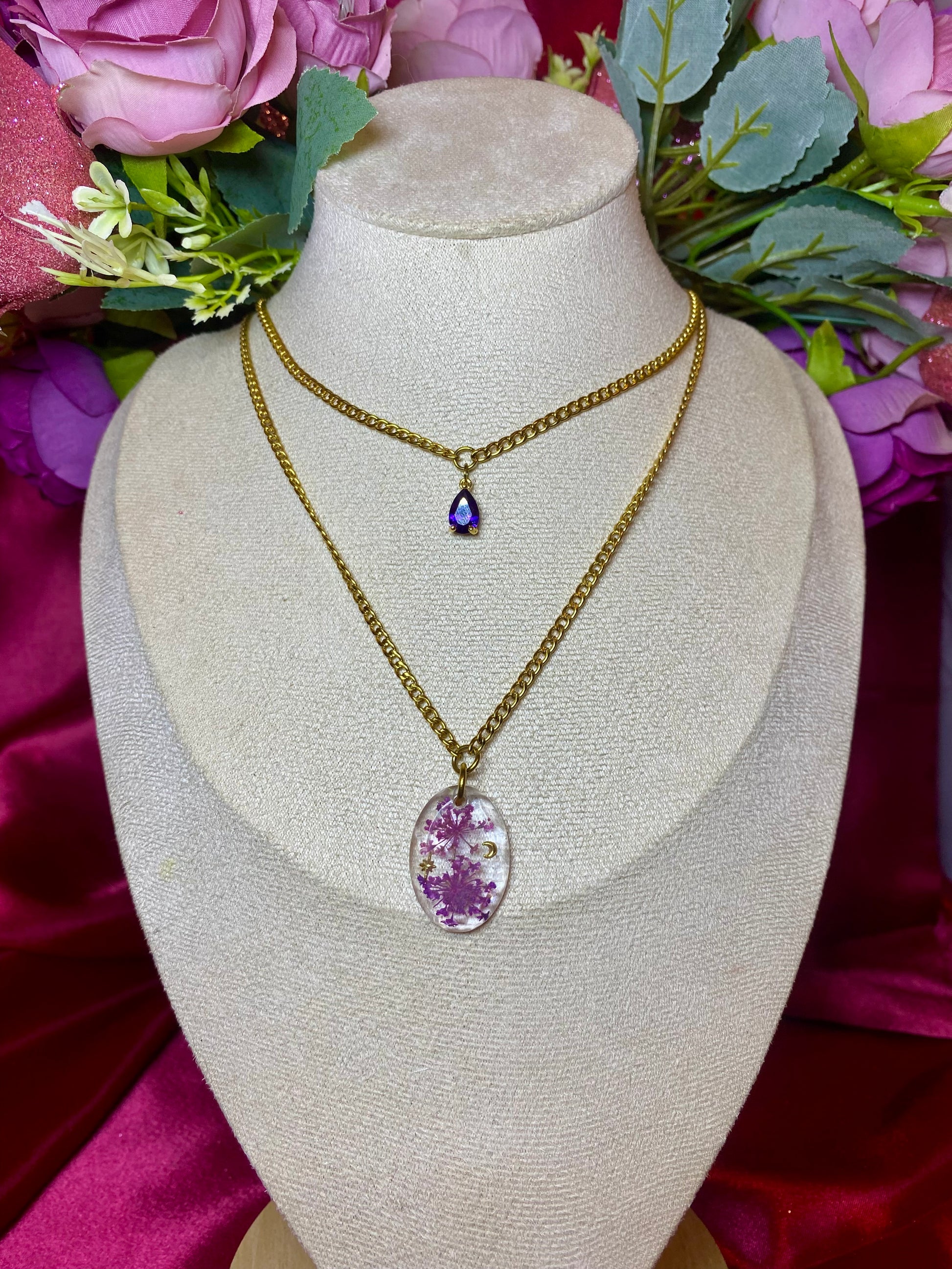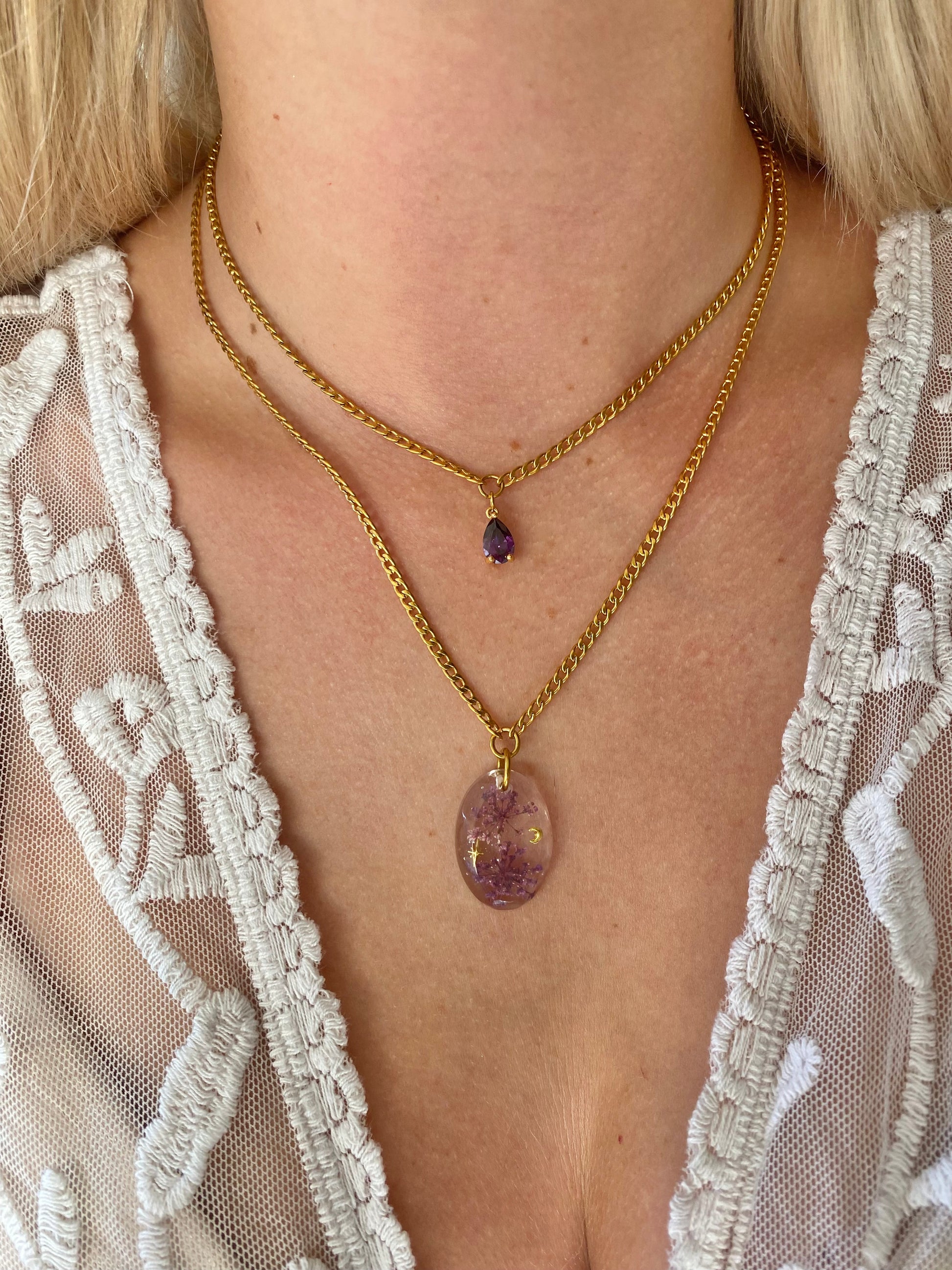 -médaillon résiné à la main avec incrustations